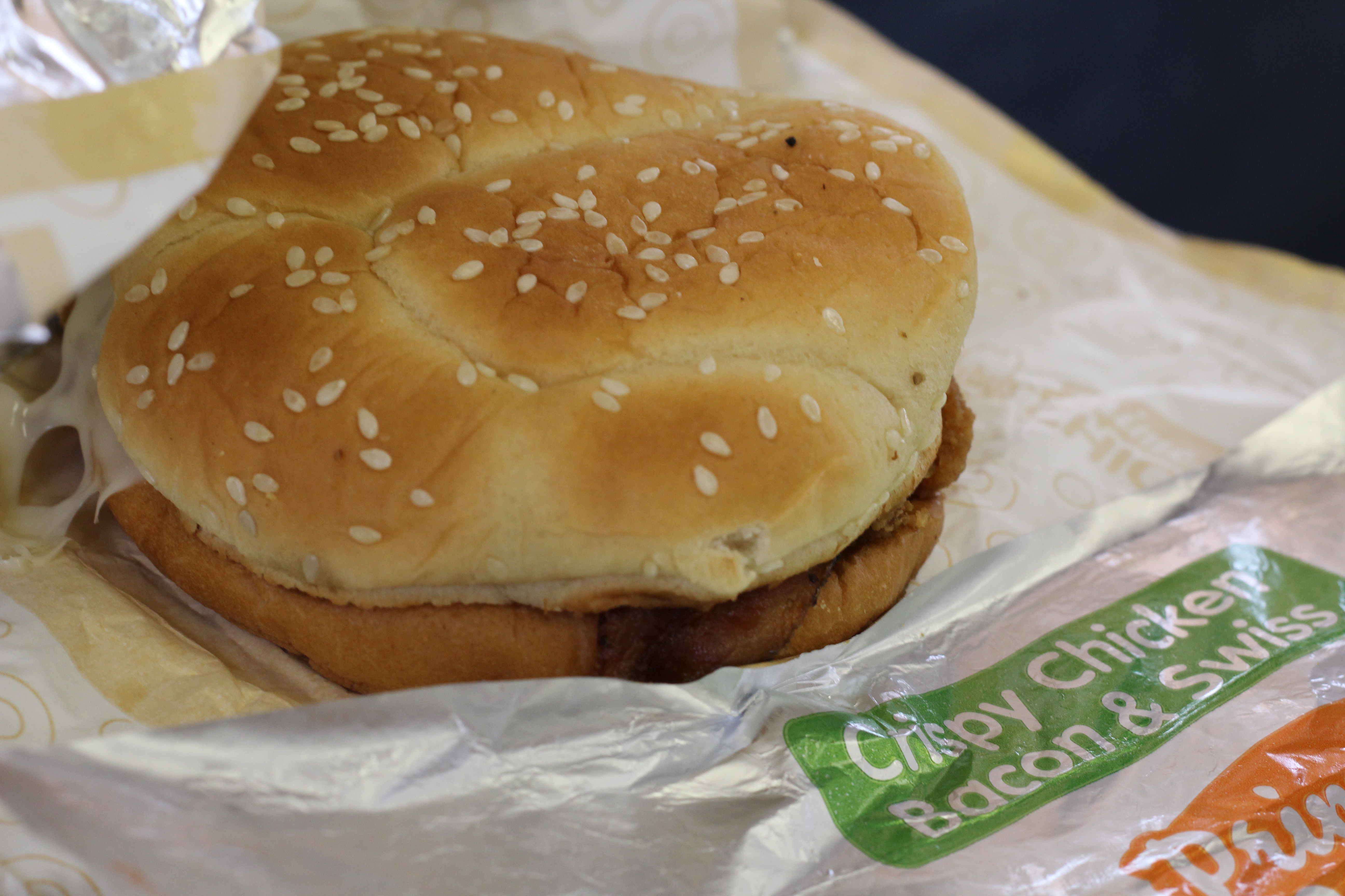 Matt ordered the Crispy Chicken Bacon and Swiss sandwich with Curly Fries. I think my sandwich looked a bit better 🙂 What do you think?