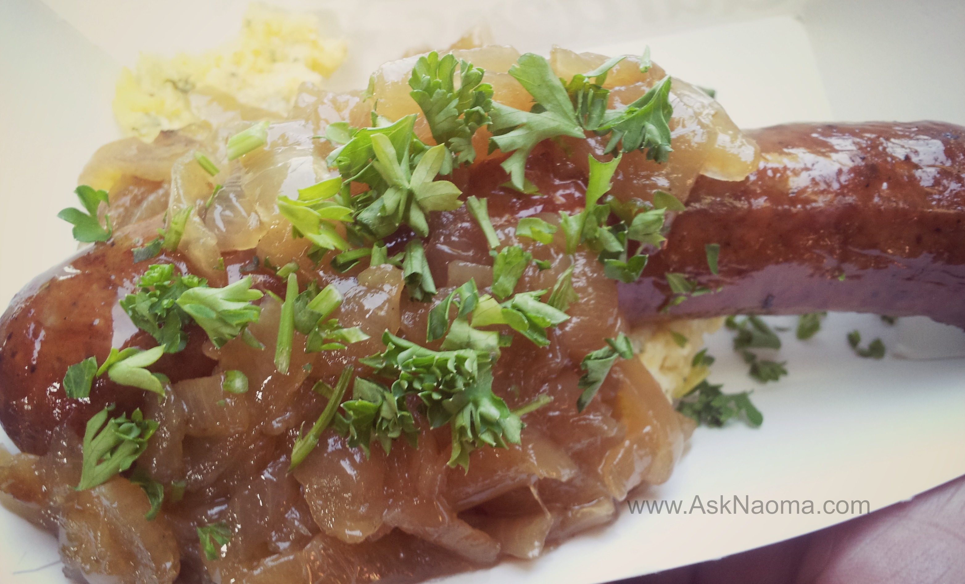 Canada – Venison Sausage & Corn Porridge – Wood-fired Venison Sausage & Creamy Polenta with Apple Cider & Carmelized Onions