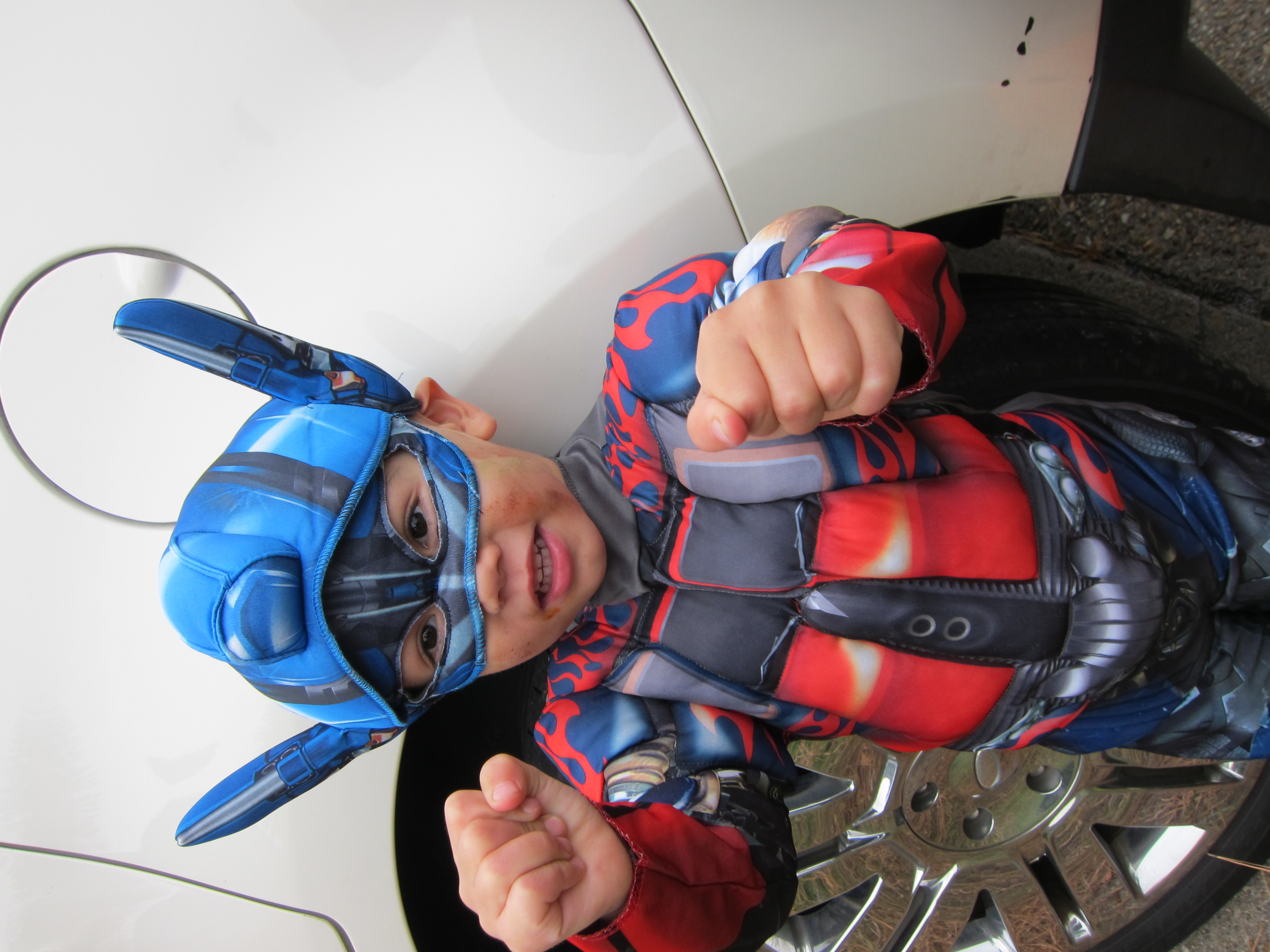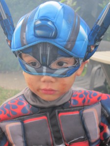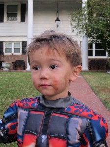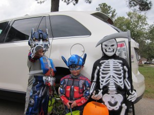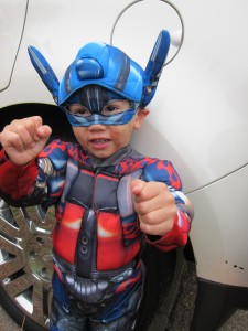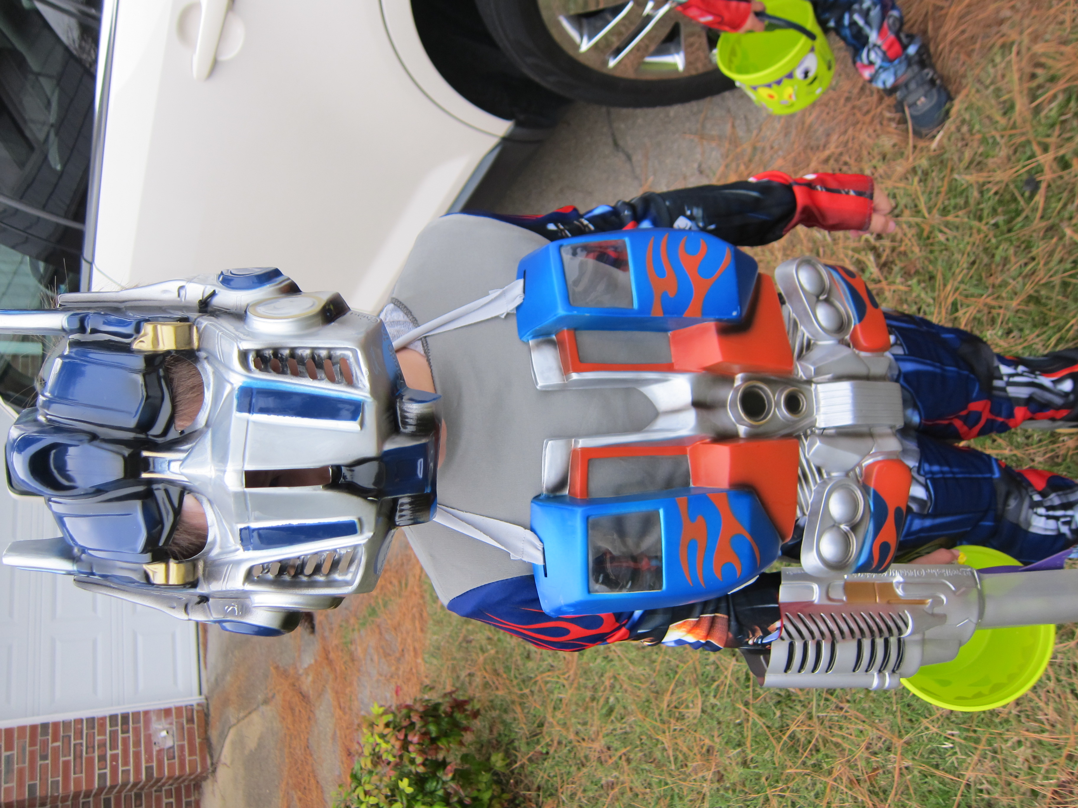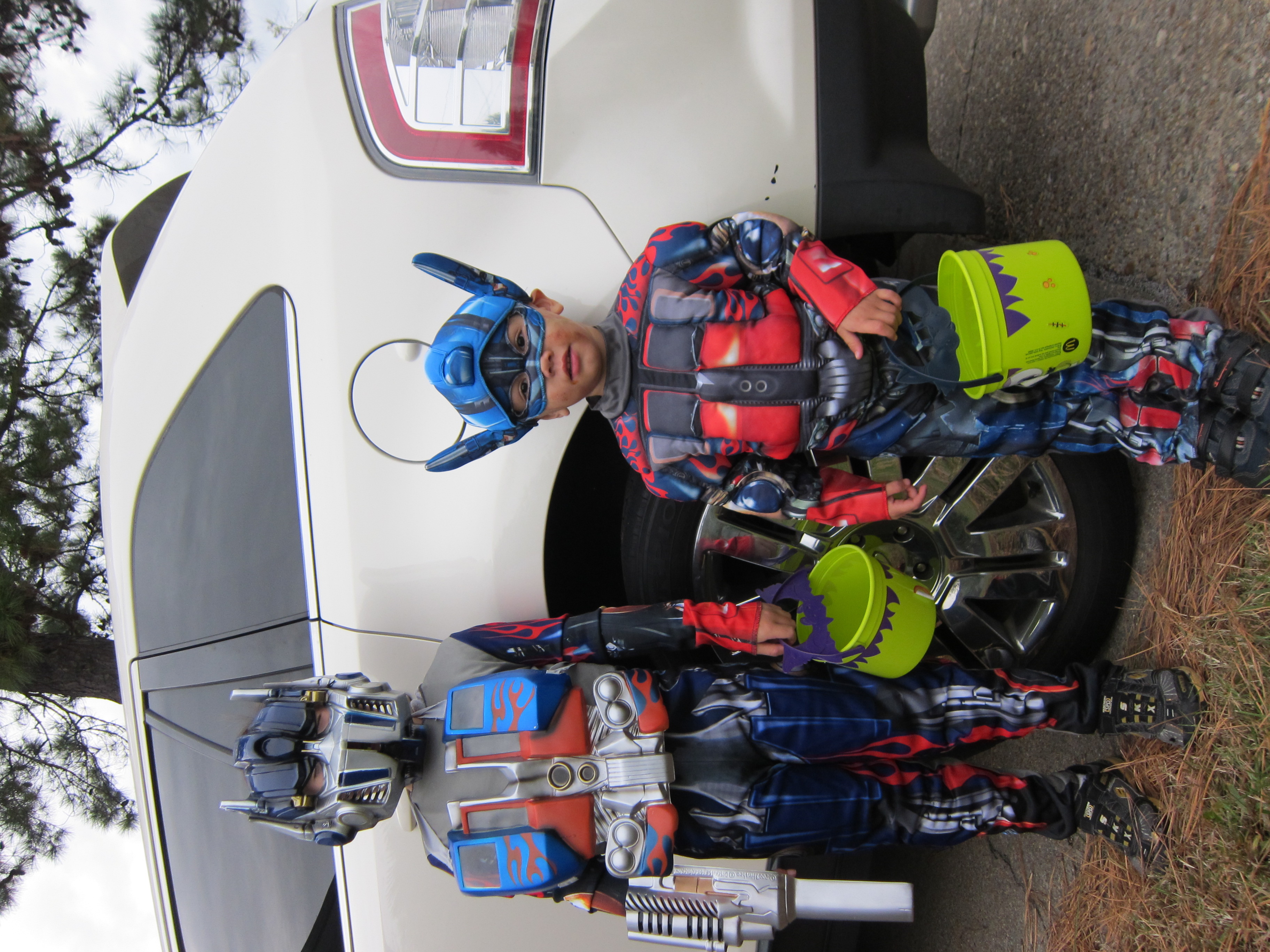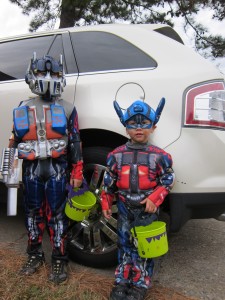 Halloween Trick or Treating 2011 with Hunter, Ethan and our neighbor friend Daniel. I had 2 Optimus Primes and a skelton. It was so cute when we picked out costumes the boys both wanted to be the same thing.