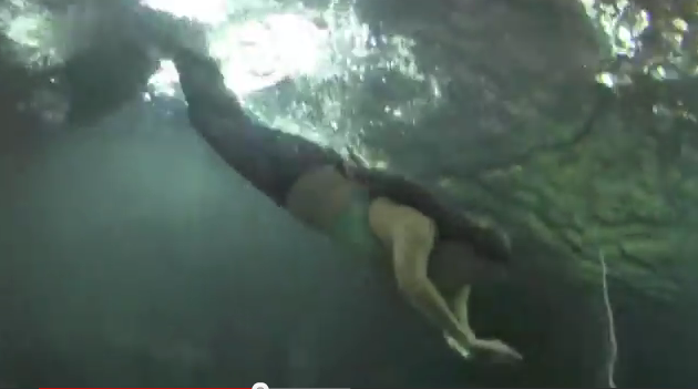 It really depends on how long she was swimming previous to this video. As an underwater performer/mermaid, I know that the longer you are underwater holding your breath the worse your breath hold becomes. I am sure she isn’t getting much of a chance to come up and stay up for air. You are supposed to balance the time you have above water with the time you have below 50/50. So if you are down for a minute you should stay up for a minute to re-oxygenate your blood. If you do not, your breath hold becomes shorter. So that is possibly why she is down for such a short time in the video.